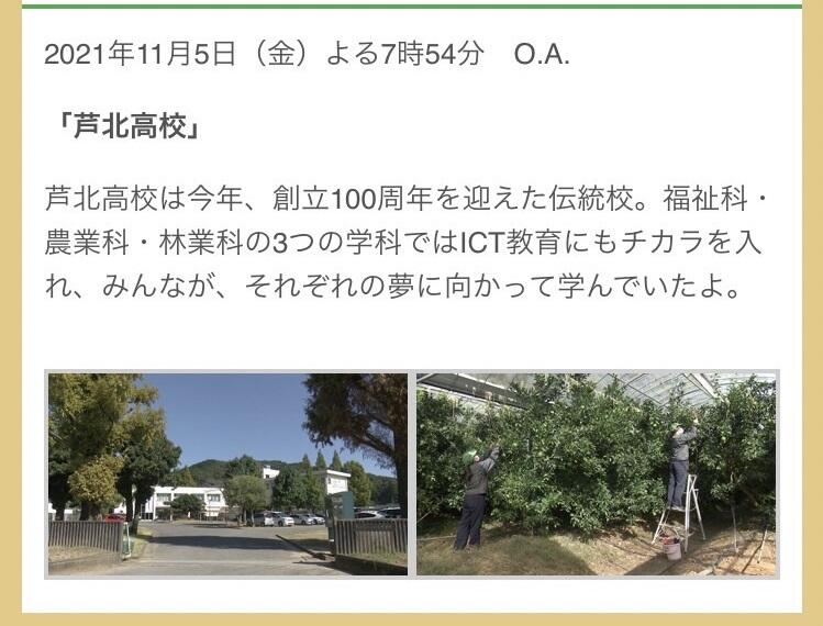 KAB(5チャンネル)で11月5日(金)夜7時54分の「DoYouのうぎょう?合唱団」にて、芦北高校が紹介されます。本校は今年で創立100周年を迎えました。農業科・林業科・福祉科の生徒がそれぞれの学科で頑張っている姿が放映されます。ぜひご覧下さい♬