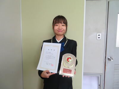 「おもいがけず立派な賞をいただき、びっくりしています。実習中に感じたことを短歌に詠みました。これからも短歌作りを楽しみながら続けていきたいと思います。」(3A 濵田 智恵)