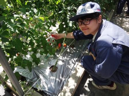 現在、農業科の野菜専攻生(3年生)はトマトの収穫を行っています!