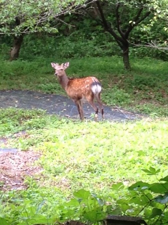 鹿は柑橘(不知火や甘夏)の新芽を食べてしまうので“害獣駆除”の対象です。鹿は私たちを見て