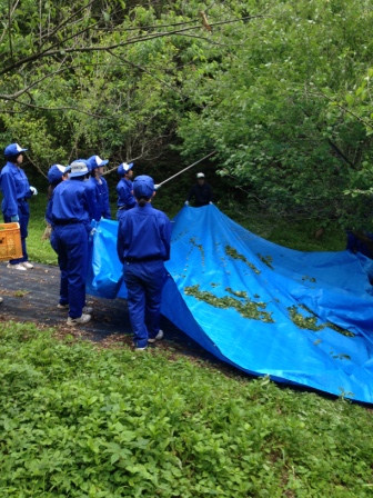 本日の1年生の食品製造の授業で『梅の収穫』を行いました。農場の梅園は山の中にあります。