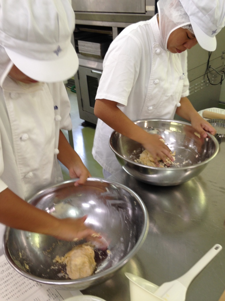 農業科2年生の「食品製造」では、小麦粉を使った基礎的な製菓製造を学びます。