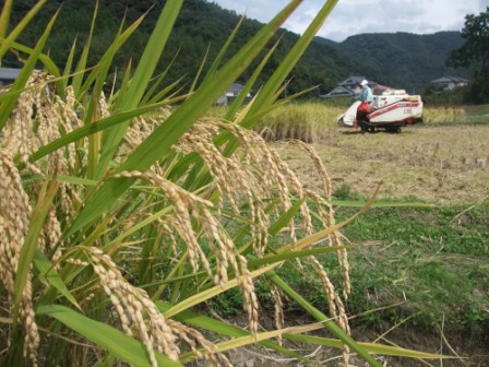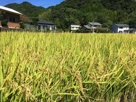 水田は黄金色に染まり、立派な稲穂が出ています。