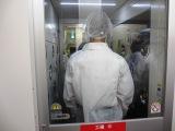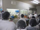 ここで製造されている商品の説明を受け、実際に工場の中を見せてもらいました。食品を扱うところなので、白衣を着てエアシャワーに入ってから見学しました。
