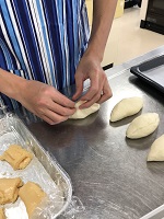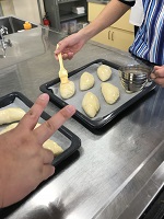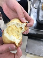 1月17日農業科3年生の食品製造で『クリームパン』を作りました。クリームパンはこれまでの実習の応用編でパン生地を捏ねて、生地の発酵の間に中に詰めるカスタードクリームを作ります。なので、とても忙しい!けれど、これまでの3年間、農業科で培った体力