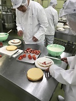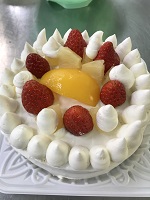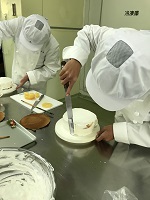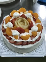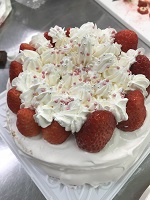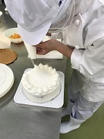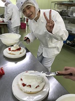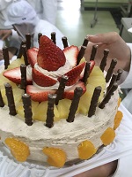 農業科1年生の食品製造の授業で「デコレーションケーキ」を作りました。1月18日と23日に2班に分かれてスポンジケーキから作りました。自分でデコレーションしたケーキはキラリ