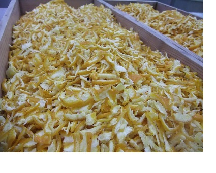 ⑥ 『果皮』も90度の湯に10分間浸漬を3回繰り返し、“苦味”を抜きます。圧搾機で水分を絞り