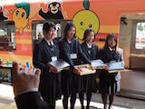 毎回希望者を募ります。今回参加した積極的な3人は「芦北高校です!私たちが作りました!」「おいしいですよ!