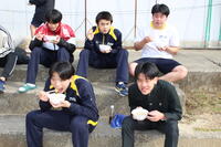 ゴールの後は、保護者に作っていただいた豚汁を食べました。私は後片付けや表彰の準備で食べそこないましたけど…(K)