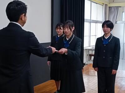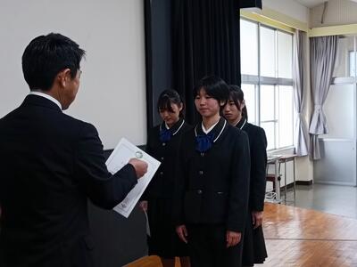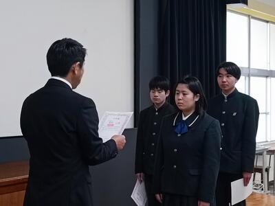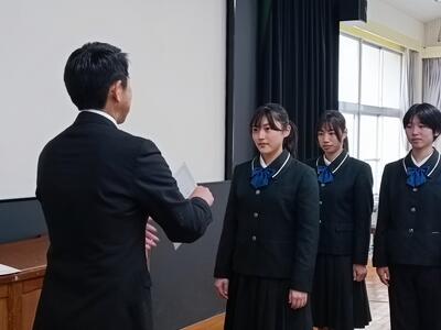続いて、福祉クラブの役員任命式が行われました。こちらは芦北高校独自のクラブになりますが、様々な取り組みにより、福祉科の魅力を発信したり、県内の福祉を学ぶ高校生と連携を図ることができたらと今回創設されました。