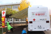 日本赤十字社の献血車が到着し、生徒・職員を対象とした献血に協力しました。