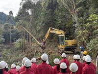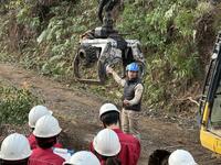 高性能林業機械を使った迫力のある作業を見て生徒は驚きと歓声を上げていました。