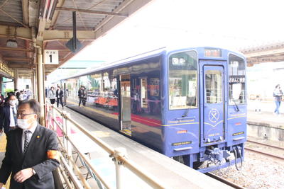 そしてホームには、今回の記念イベントのために、おれんじ食堂の特別列車が到着していました。イベント
