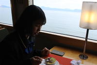 スイーツと海岸の景色とともに!いつもの通学列車が、なんとも言えない贅沢な時間になりました!