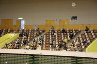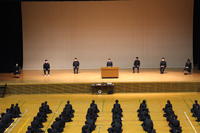 大正琴の演奏や、新体操部の全国大会での中継映像、野球部のメモリアルムービーが放映されました。