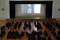 休憩を挟んで、今回のメインイベントである動画放映が行なわれました。各学科や部活動、各クラスから持ち寄られたオリジナルの動画を参加者全員で視聴しました。
