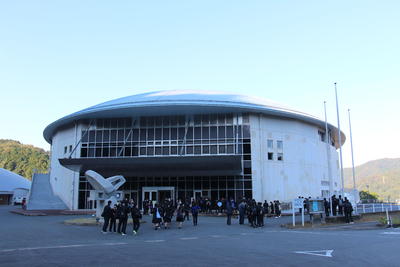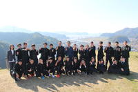 しかし、これで終わりではありません。今回は、しろやまスカイドームまで来ましたので、全校生徒全員で芦北町の歴史的遺産である佐敷城跡に登り、クラスごとに記念撮影を行ないました。東には、遠くは不知火海の風景から佐敷駅など町の風景が見渡せました。西には、芦北高校の校舎や佐敷川の流れる景色が望めました。