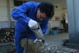 説明後、種駒打ちと原木(クヌギ)に穴をあける班に分かれて、実習が始まりました。