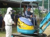 8月8日はいよいよ実技です。金曜日に学習したとはいえ、実際に乗ってみると操作は難しく、土を削ったり、