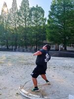 体育大会も終わり、いよいよ県総体も間近に迫ってきました。陸上部の投擲で1人で黙々と練習に取り組んでいました。何回も投げてくれたのにこんなんでカメラマン(私)の撮影技術が至らず申し訳ありません。大会当日は、えがお健康スタジアムで砲丸を大空高く飛ばしてほしいですね。