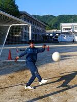 サッカー部も練習していたので、ちょっと練習を見せてもらいました。蹴った瞬間を撮るというのが、こんなにも難しいのかと思うほど、うまく撮れません…