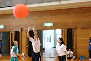 また、佐敷分教室の生徒さんと風船ボールを使って、交流も行いました。