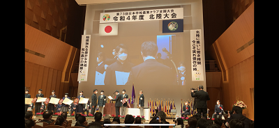 第73回日本学校農業クラブ全国大会令和4年度北陸大会の、農業鑑定競技会に農業科3年生の川本さんと林業科3年生の村上さん、2年生の山下さんの3人が熊本県の代表として参加しました。(農業の専門性を問う競技です。)