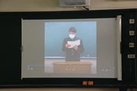 本来でしたら、学年別に集合をして、生徒の前で実施するのですが、コロナ感染拡大予防のため、事前にビデオ収録を行ないました。視聴覚