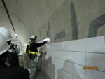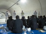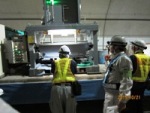 いよいよ工事現場の見学です。ヘルメットをかぶり、マスクをはめ、安全第一で見学させていただき