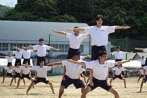 芦北高校の体育大会の一番の目玉はマスゲームです。練習も一番、このためにやってきました。全校生徒で最高のパフォーマンスを見せることができたようです。
