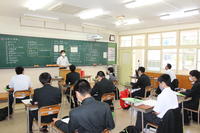 1年生は8時20分 2年生は10時30分 3年生は13時40分と学年別に登校し、健康観察や課題の提出、休校中の家庭学習に対する心構えや新たな課題の受領などがありました。
