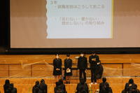 つづいて、各学年の生徒人権委員から、それぞれの学年での取り組みについて発表してもらいました。