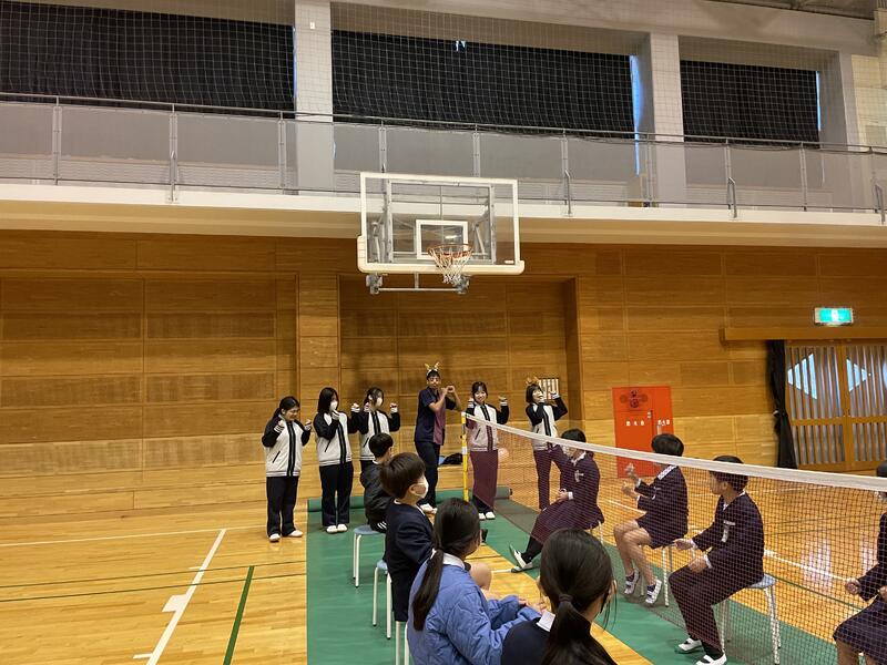 続いて、高齢者レクリエーションの体験を行いました。小学生は高校生のサポートを受けながら体を動かし、高校生も小学生もみんなが「笑顔」で楽しむことができました。高校生は介護実習を通して培ってきたレクリエーション力を存分に発揮できたのではないでしょうか。小学生の皆さんに楽しんでもらえたことが高校生にとって何より嬉しかったようです。