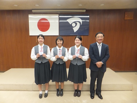 10月10日(水)、芦北町役場にて「芦北町スポーツ・文化事業補助金交付式」が開催され、芦北高校から3人の生徒が参加しました。