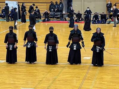 山鹿市総合体育館において県下高等学校剣道大会が行われ、剣道部が参加しました。1月3日の練習初めから頑張ってきた剣道部の団体戦が始まりました。