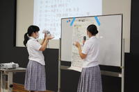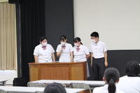先週に引き続き、今日は福祉科2年生から1年生に向けて、昨年度の福祉体験実習の報告会を行いました