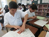 芦高祭で披露できるよう、折り紙でキャラクターを制作しています。介護施設や保育園等では、指先を使った細かい作業が必要です。今回は、生徒一人一人が自ら選択したキャラクターを作りました。折り紙の展開図を解読しながら、互いに教え合い、作品を作り上げました。ショーウィンドーに飾るにはまだ時間がかかりますが、芦高祭に向けてコツコツと準備をしていきたいと思います。