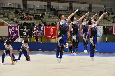 それぞれの選手の持つ力は十分に発揮できたいい演技でした。重厚感のある曲にマッチした動きでミスはほとんどなく観客を魅了しました。しかし、全国選抜の覇者である佐賀県立神埼清明高校の安定感のある演技に1歩及ばず2位という成績でした。