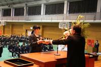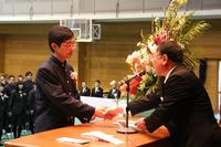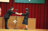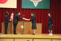 表彰式では、情報処理検定、部活動表彰(バドミントン部、空手道部、弓道部)、熊本の心の作文、介護コンテスト、校内漢字テスト等の優秀者が表彰されました。