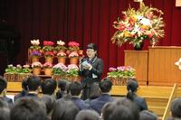 生徒を代表して生徒会長の挨拶と、生徒会より花束贈呈がありました。