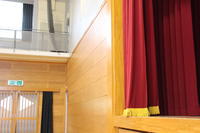 ステージ付近やバスケットゴール下の壁側の木目の質感が良く描かれています。