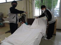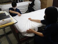 手洗いを済ませ、ベッドメイキングに挑戦しました