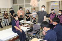 大堀先生は「動き出しは本人から。介護者がすべてやろうとせず、利用者様の自主性やできることを認めることが大切である」と話され、生徒は体位変換や車いす移乗の支援を実践しました。