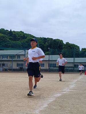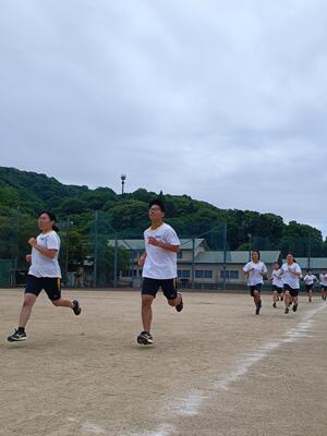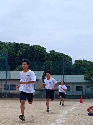 新体力テストの最後の種目は持久走でした。男子1,500m、女子1,000mという距離を走りますが、本校グラウンドのトラックは250m/周あるので、男子で6周、女子で4周走ります。みんな頑張っている姿を見ることができました。