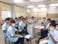 校内演習では付け爪をつけて、切る練習をします。生徒たちは初めての爪切りと、