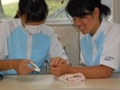 今週の1年福祉科の「生活支援技術」校内演習の内容は爪きりでした。
