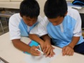 に一緒に活動するのは初めての2クラス!! 最初は少し緊張気味の生徒達でしたが、活動していくうちに