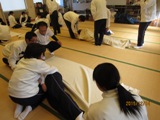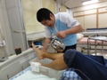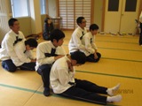 初日は「基礎講習」で、AEDの使い方や喉につまった異物をとる方法、毛布での搬送方法などを学びました。
