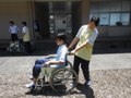 【介助する前は、視線を合わせて同意を得ます】【砂利道は後に進んだほうがスムーズ!】
