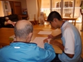 【指導されたことはメモをとります】  【脱水症予防のためにお茶のおかわりです】